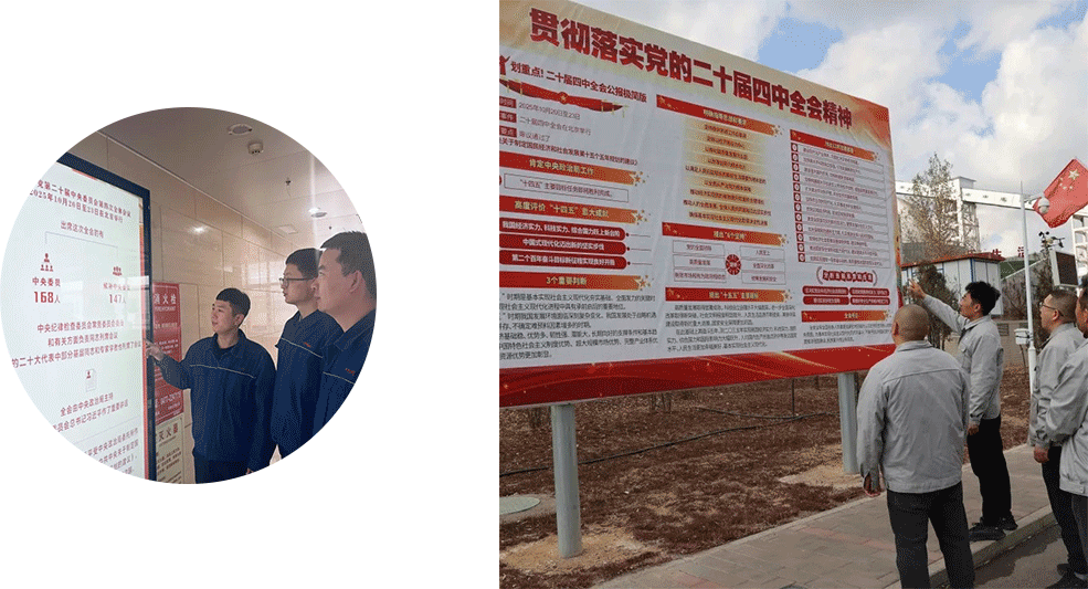 新疆公司党委以“全覆盖、重实效、有特色”为主线,掀起学习宣贯党的二十届四中全会精神热潮。学习培训分层推进。党委会议率先专题学习,将全会精神纳入干部培训必修课,配发辅导读本,依托党委中心组、读书班、“三会一课”等开展常态化学习;打造“班前会微课堂”“指尖微课堂”,通过微信公众号、学习APP推送公报解读、专家讲座,设置在线答题、知识自测,搭配矿区LED屏滚动播放解读视频,实现“碎片化”学习“不断线”。